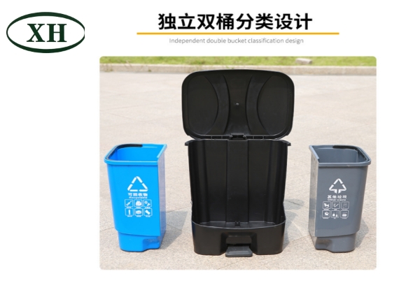 4、腳踏分類垃圾桶設計新穎,采用高密度聚乙烯原料做成,品質平穩(wěn),方便使用。